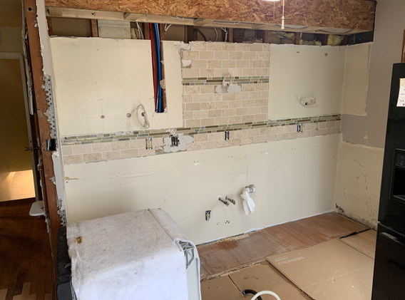 The remodel plan involved demolishing the chimney, one bearing wall, and two non bearing walls. The bearing wall was replaced with a glulam architectural beam to support the second floor.